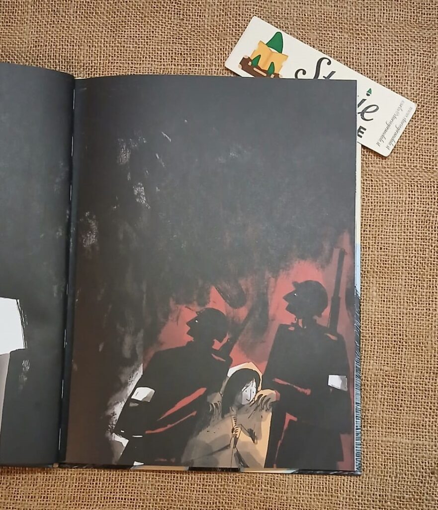 Le illustrazioni di Barroux riescono magistralmente a ricreare gli ambienti, gli stati d’animo e le emozioni grazie all’utilizzo del tratto a china, al gioco delle proporzioni e all’utilizzo del colore che alternando gli ocra, i rossi, i neri e gli azzurri crea ambienti e sensazioni narrando accanto alla parola.